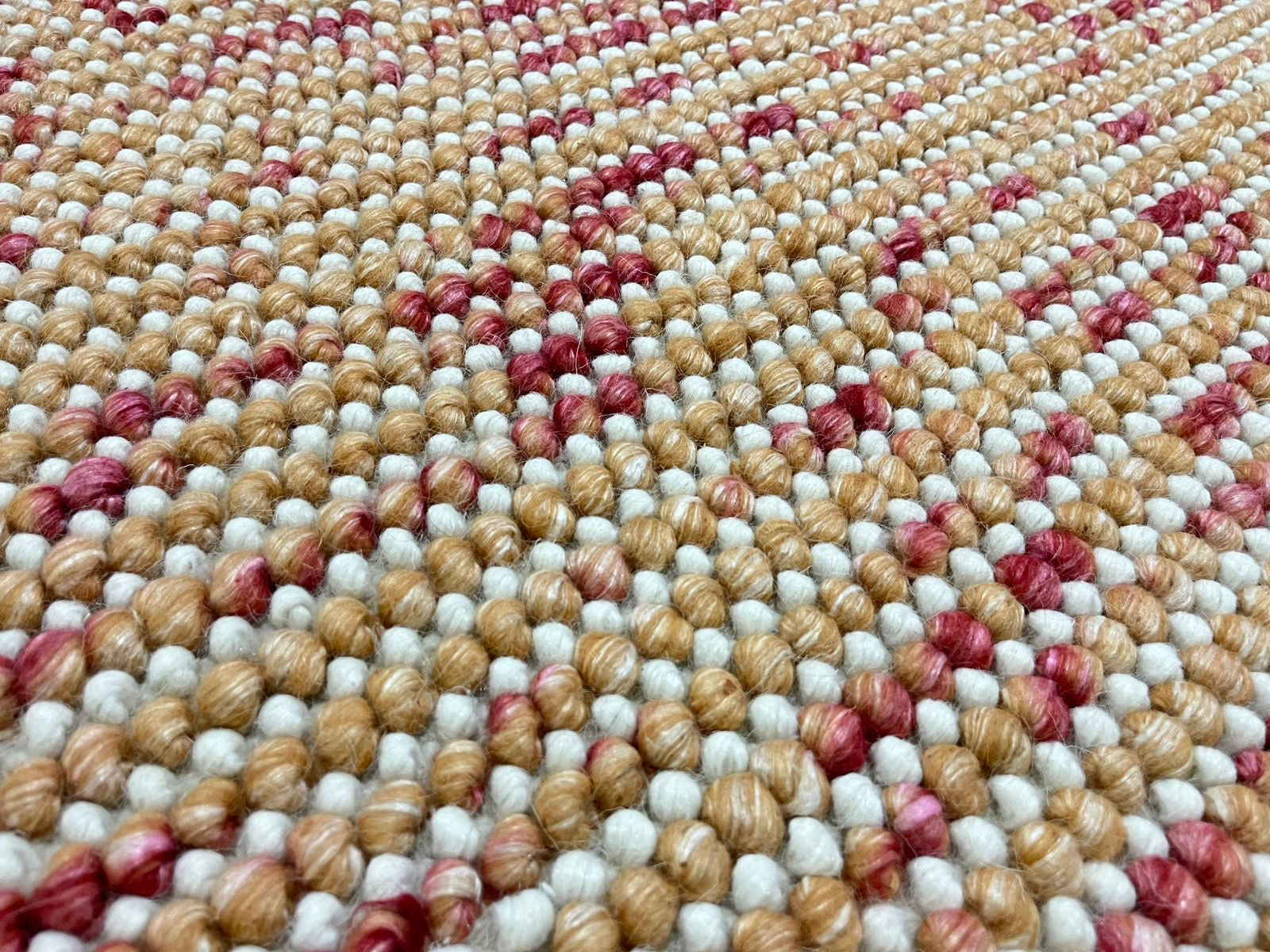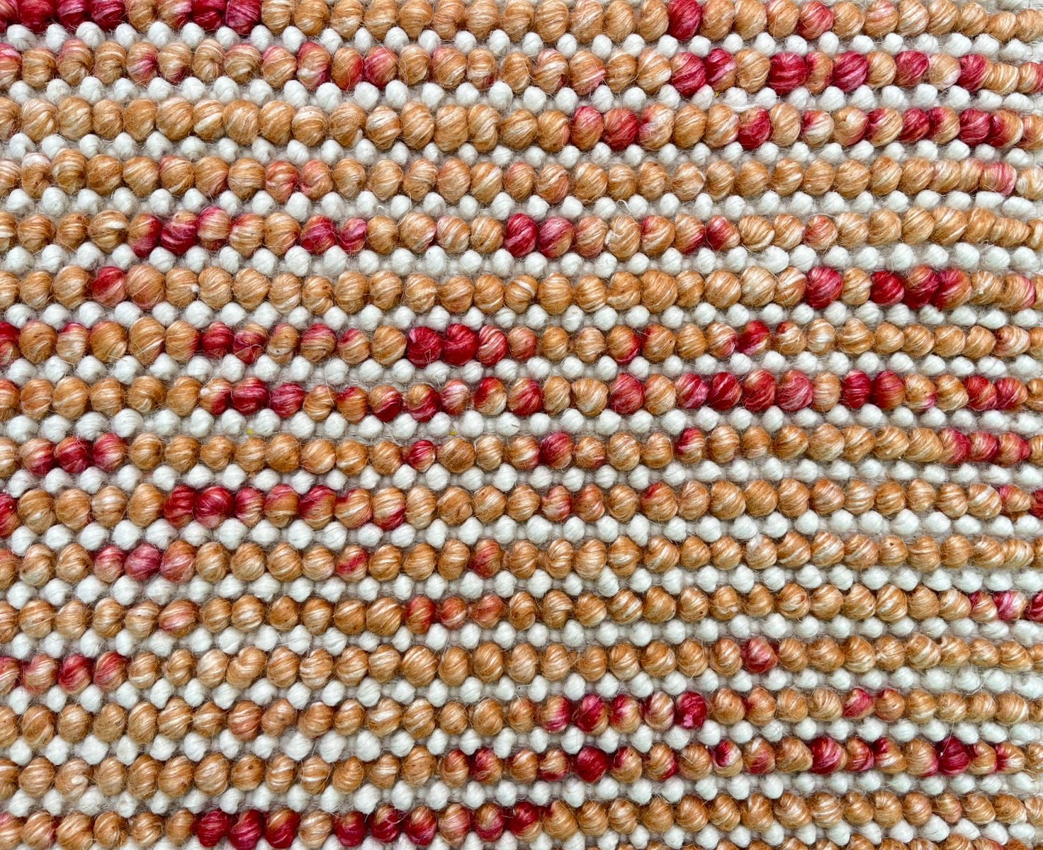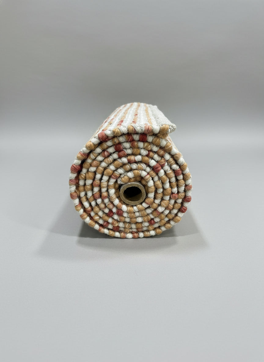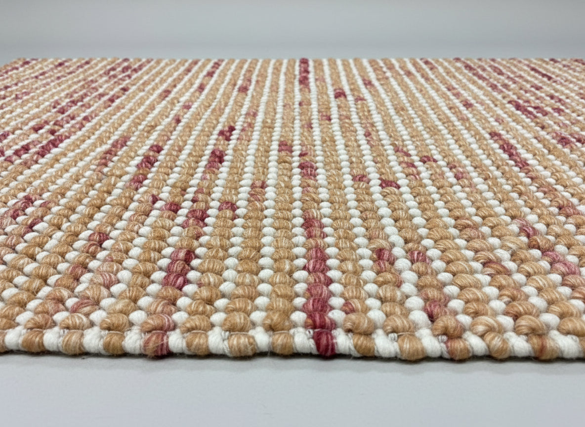 Discover elevated craftsmanship with the Pebbles Cherry, a luxurious evolution of our signature Pebble collection. Masterfully hand-woven in India, this refined wool rug features our iconic ball-loop construction, now enhanced with delicate “cherry” detailing  fine accent threads interlaced throughout the base colour, adding depth, movement, and quiet sophistication.