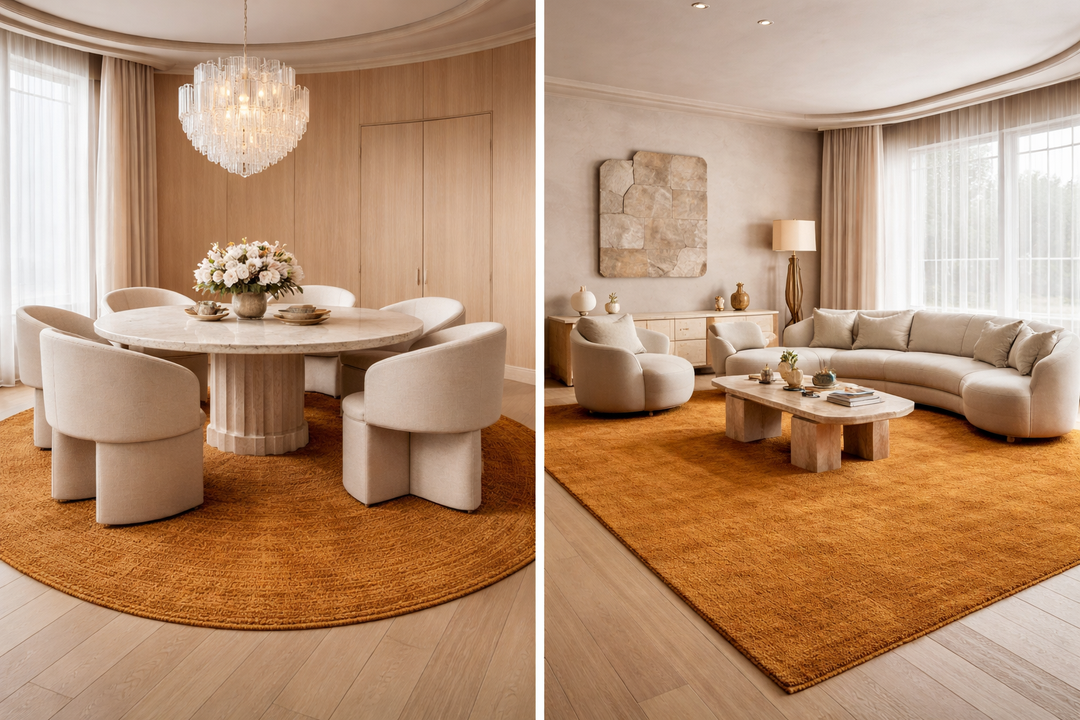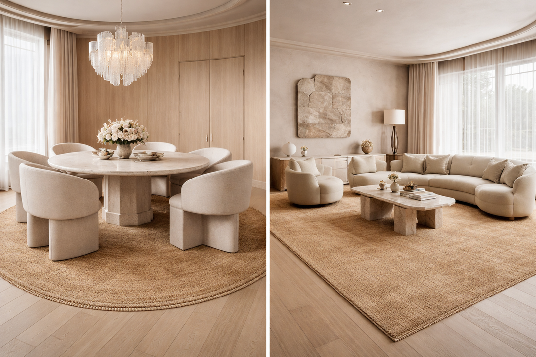 This rug has a very refined, warm, and slightly muted tone, perfect for a premium/luxury positioning. The texture also gives it a soft, hand-crafted feel